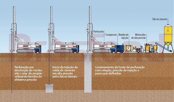 Jet grouting is a soil consolidation system based on cement mixtures injections inserted in land layers.